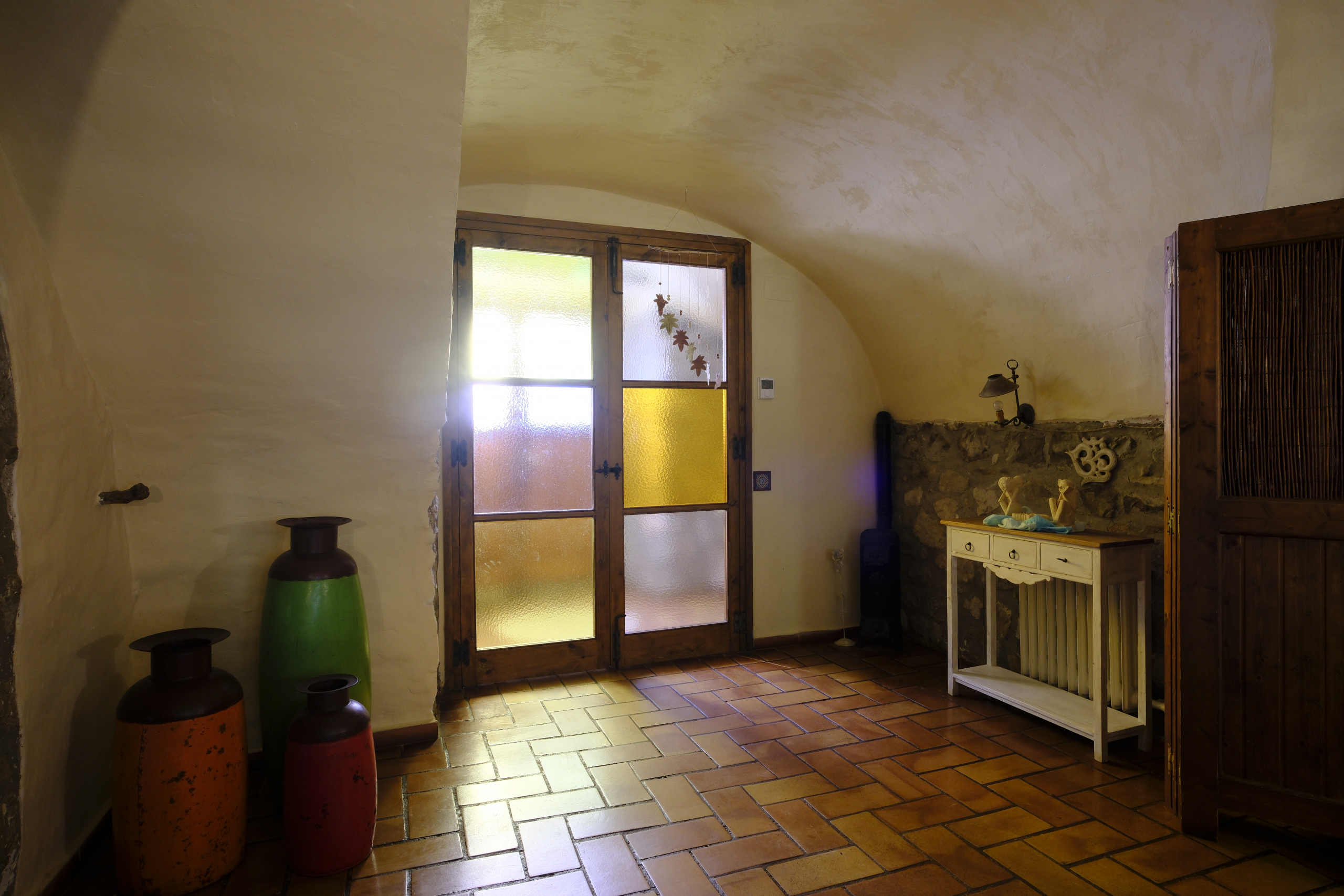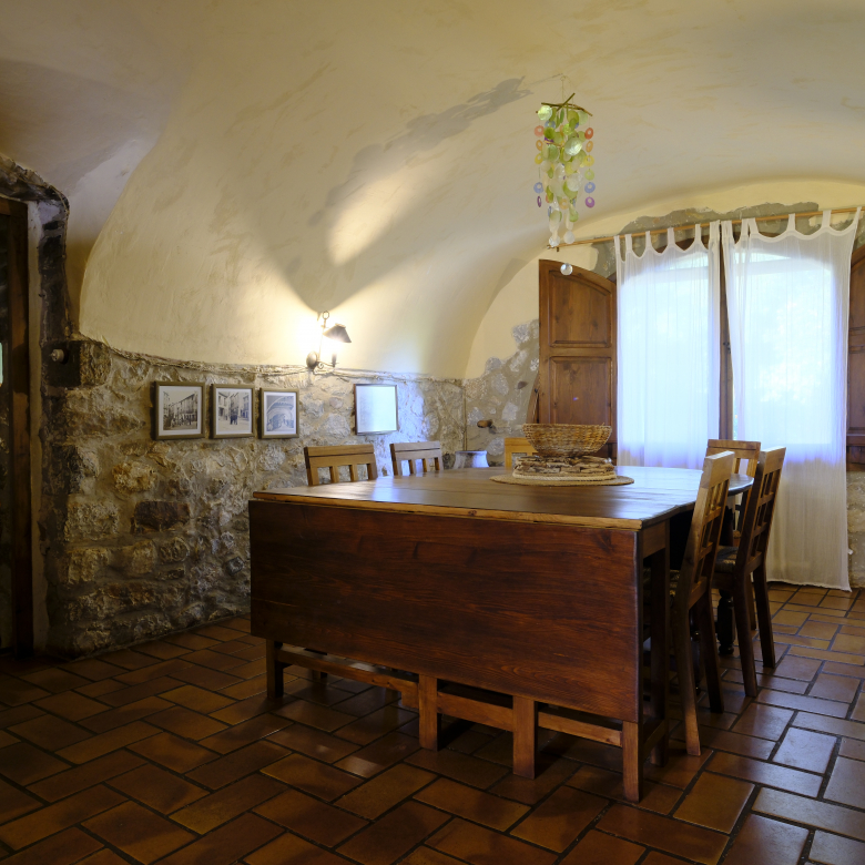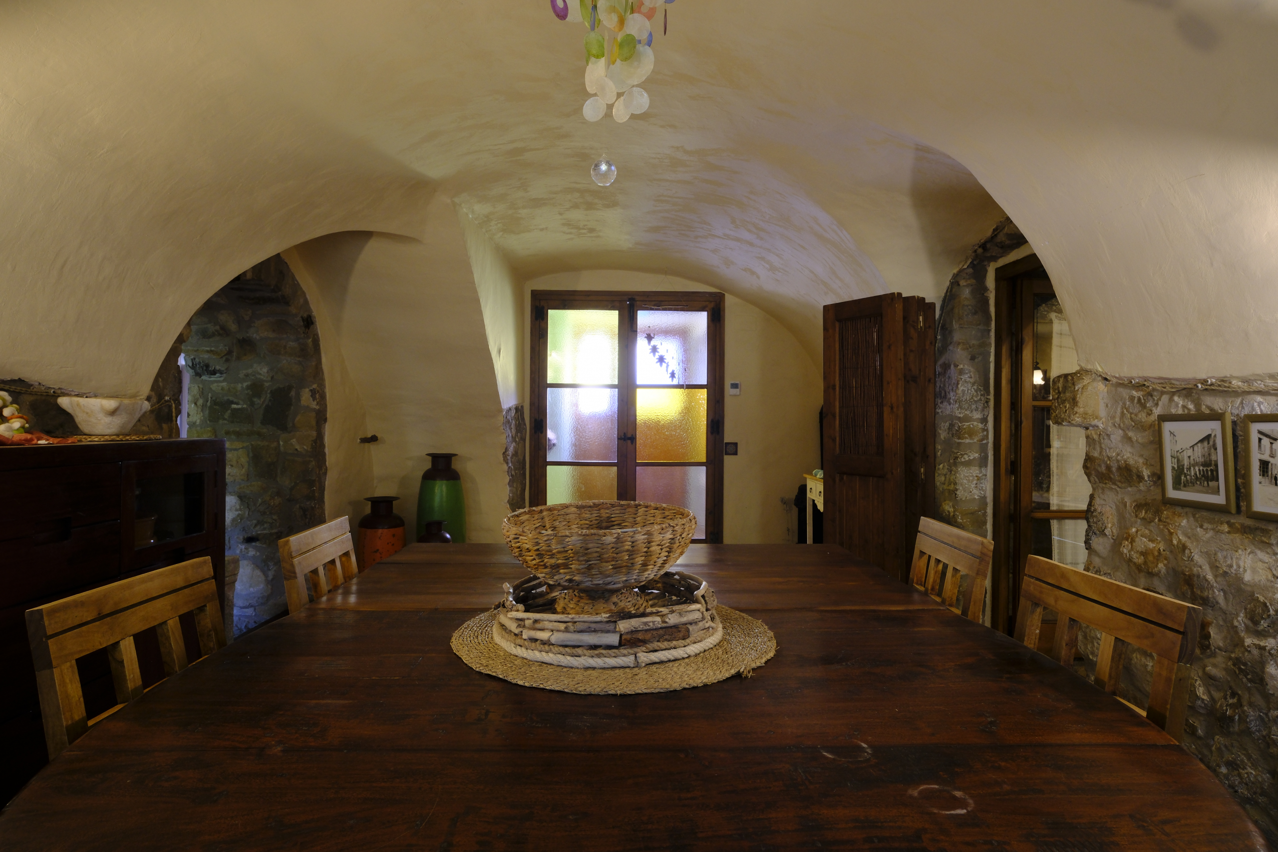 En planta baixa zona de dia amb sales, cuina, aseo , rebost i una habitació doble . Una zona de porxo comunicada amb la sala i un espai amb forn i barbacoa exterior oberta a les dues façanes nord i sud
