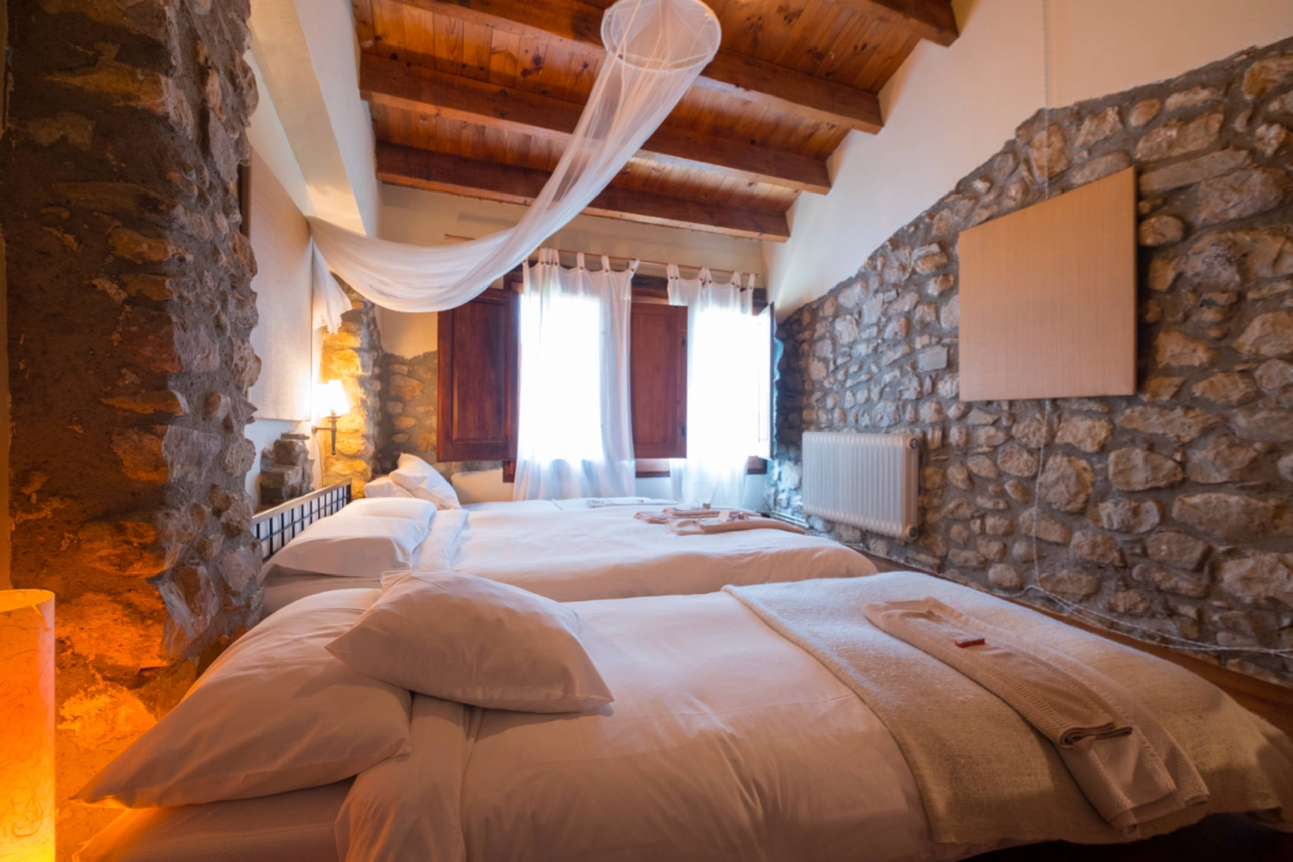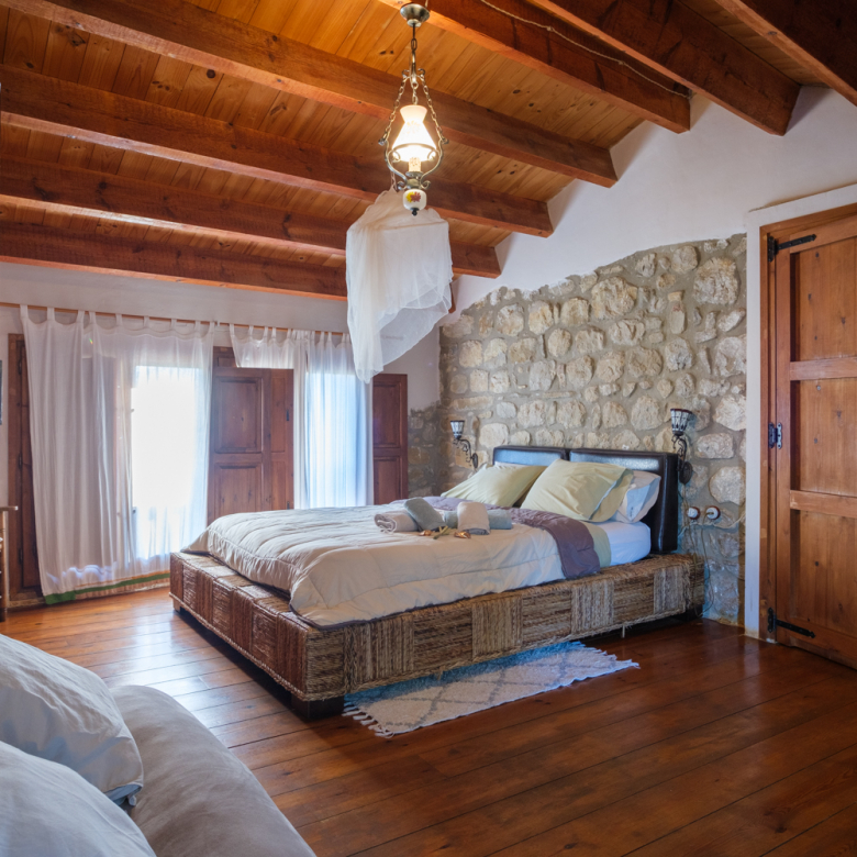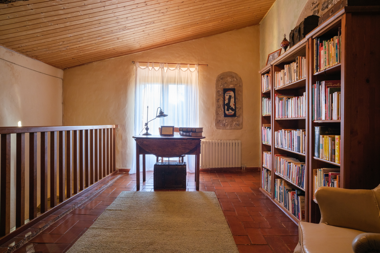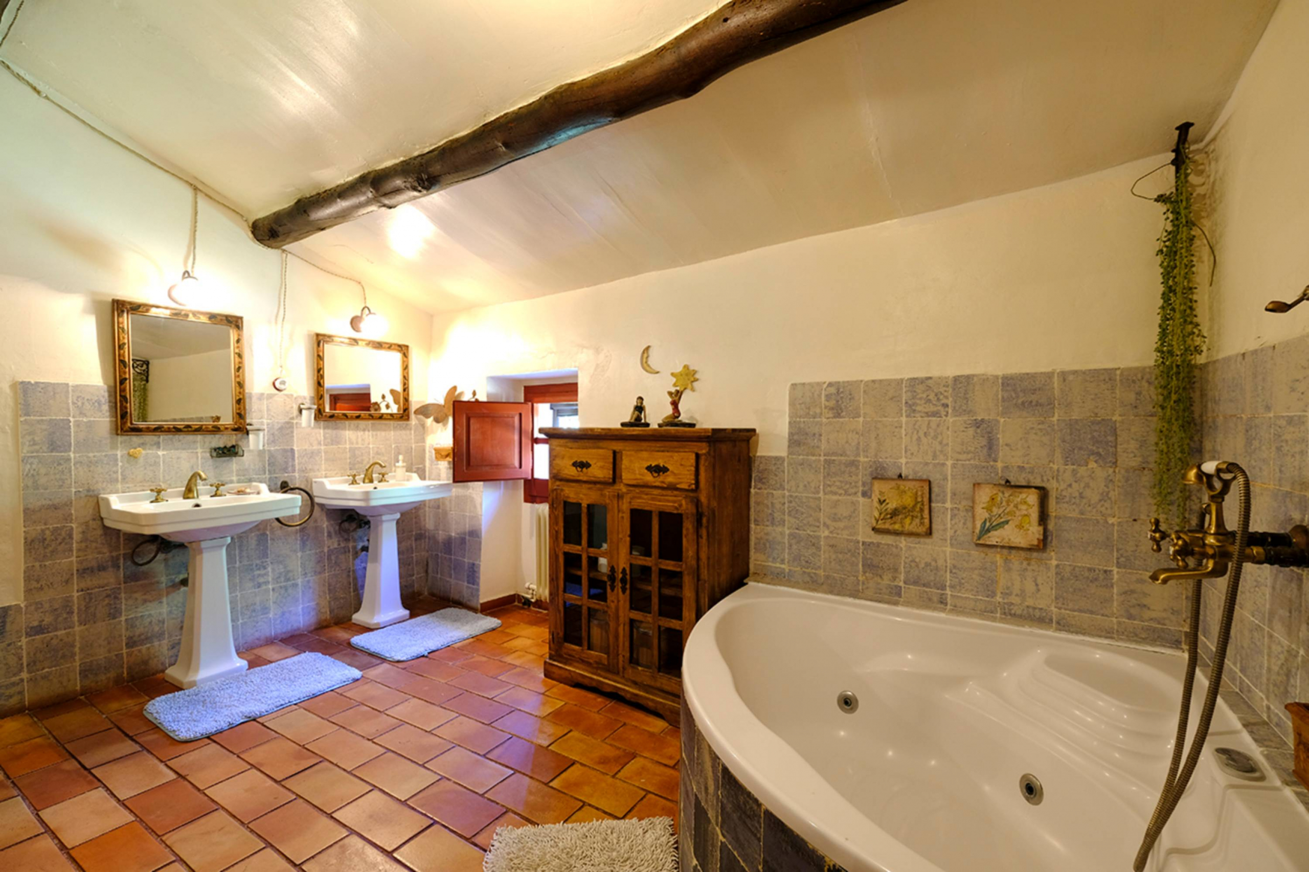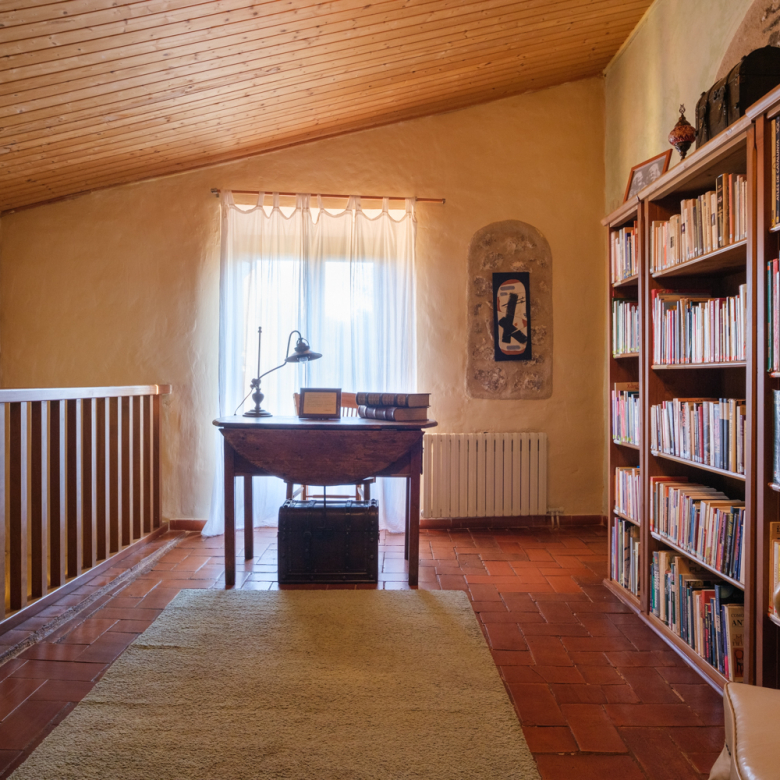 A la planta primera quatre habitacions dobles i un bany de 14 m2 amb una sala biblioteca central i una terrassa sobre el porxo de la planta baixa
