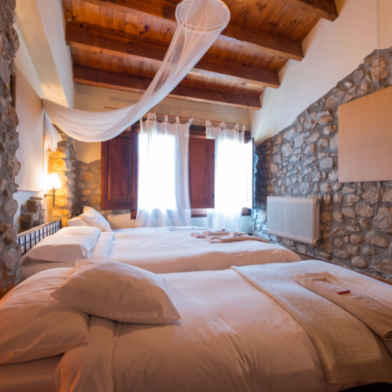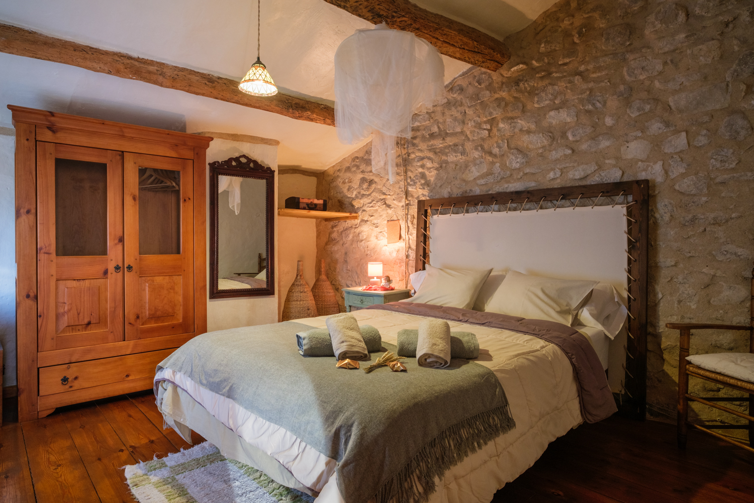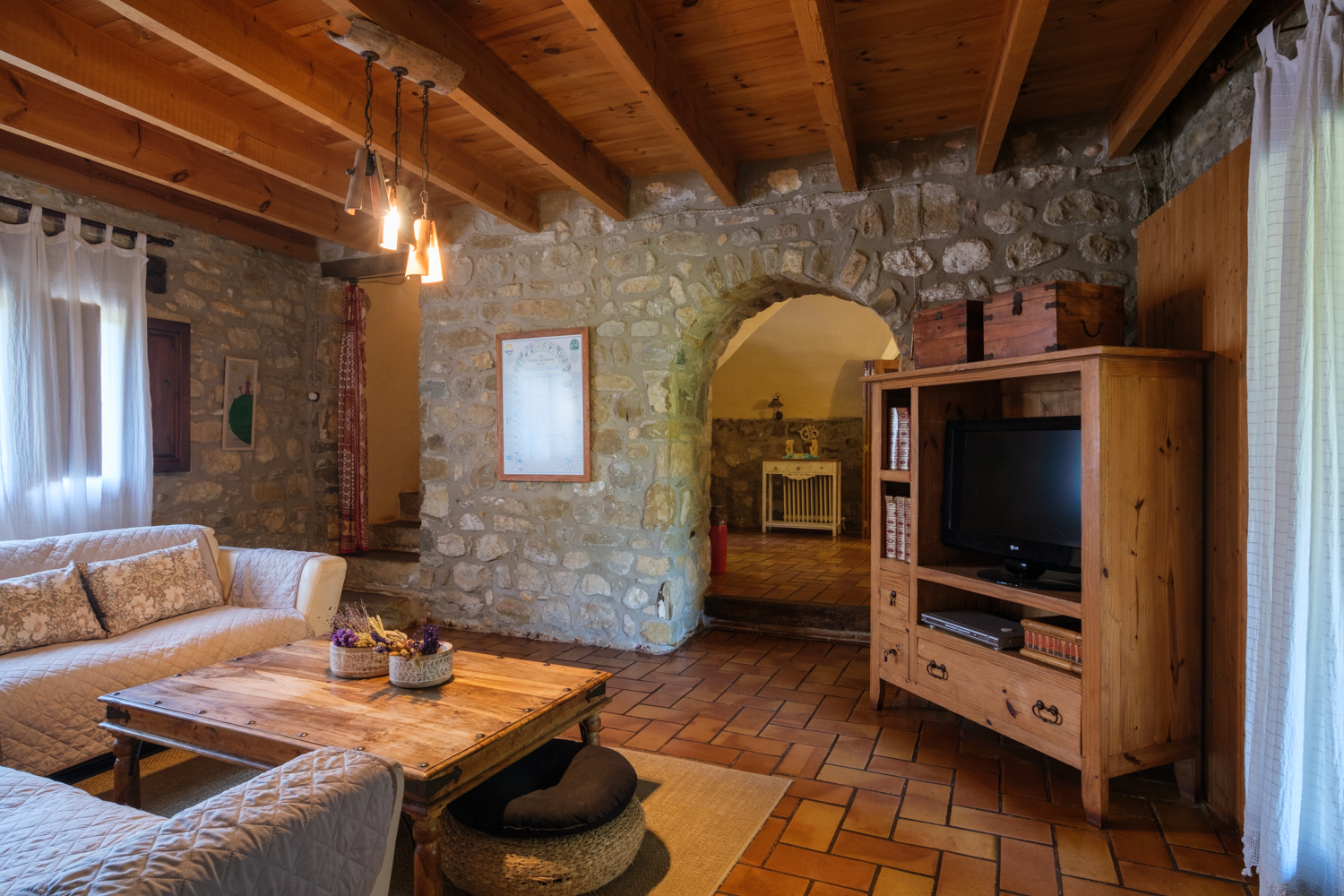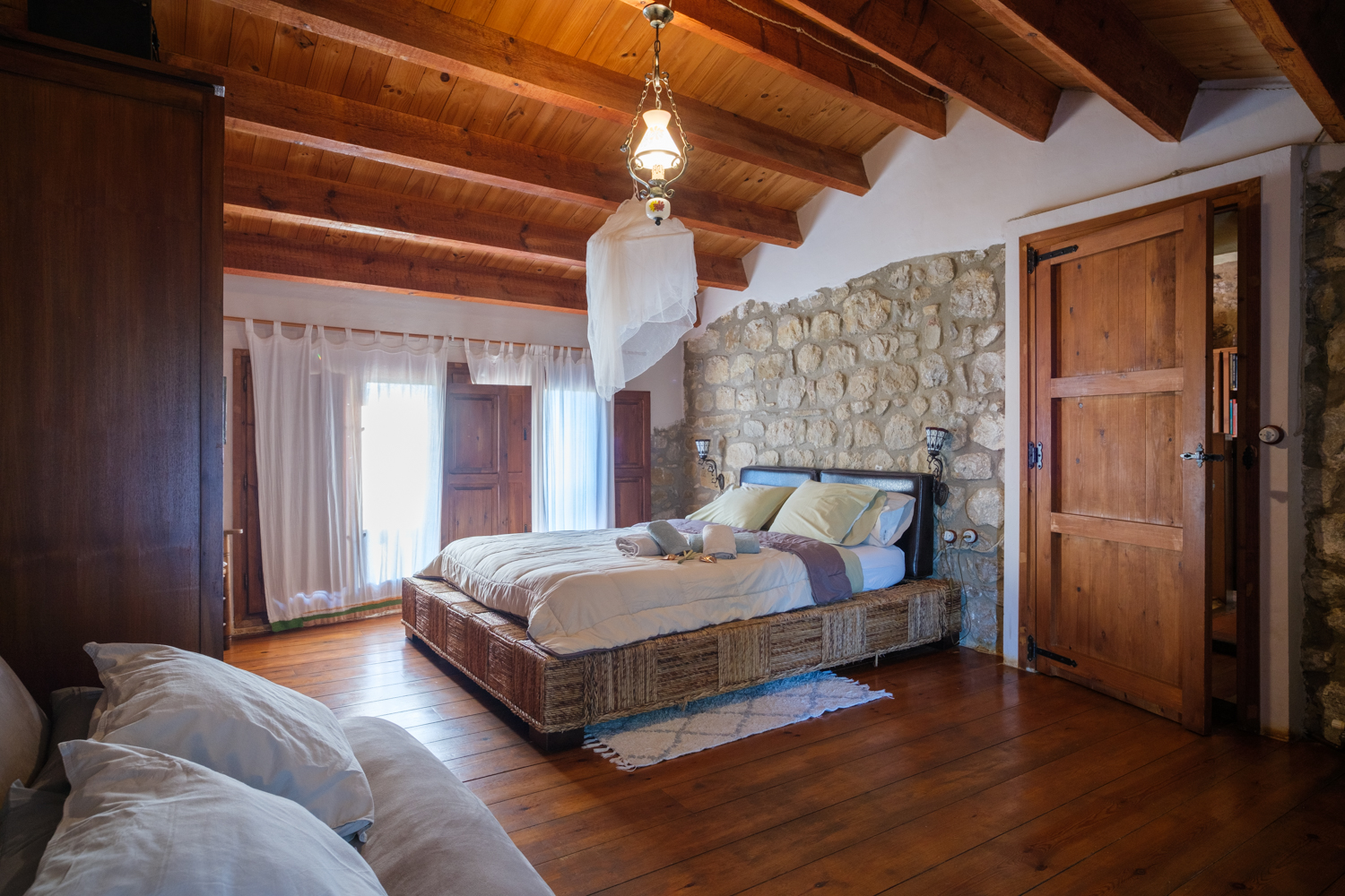A la planta primera quatre habitacions dobles i un bany de 14 m2 amb una sala biblioteca central i una terrassa sobre el porxo de la planta baixa