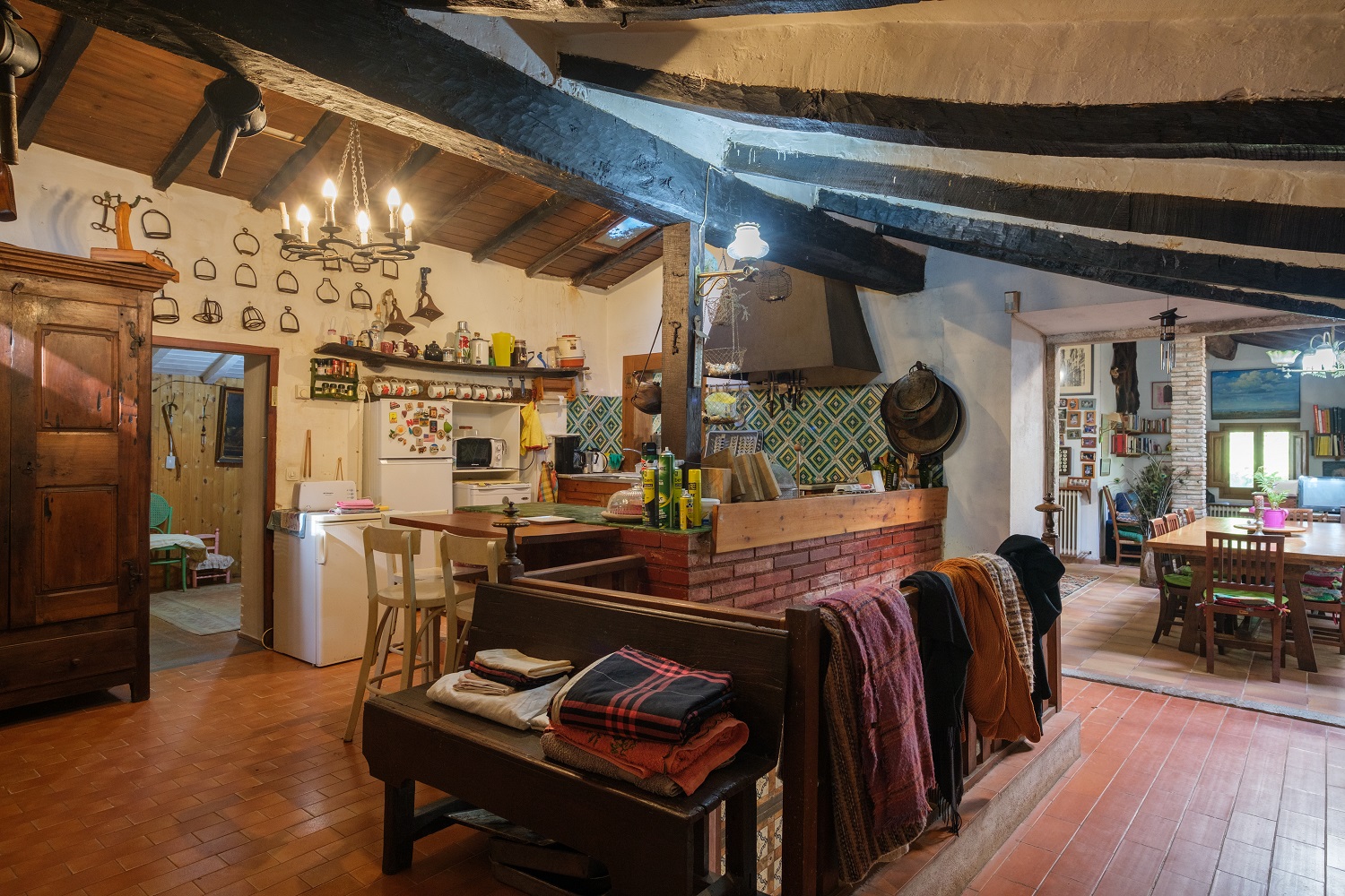 L’habitatge principal es distribueix en una gran sala fruït de l’ampliació i una sala-cuina que manté l’estructura antiga , sis habitacions i tres banys.