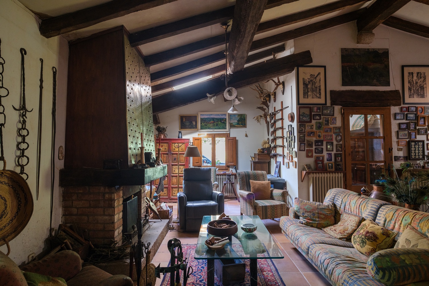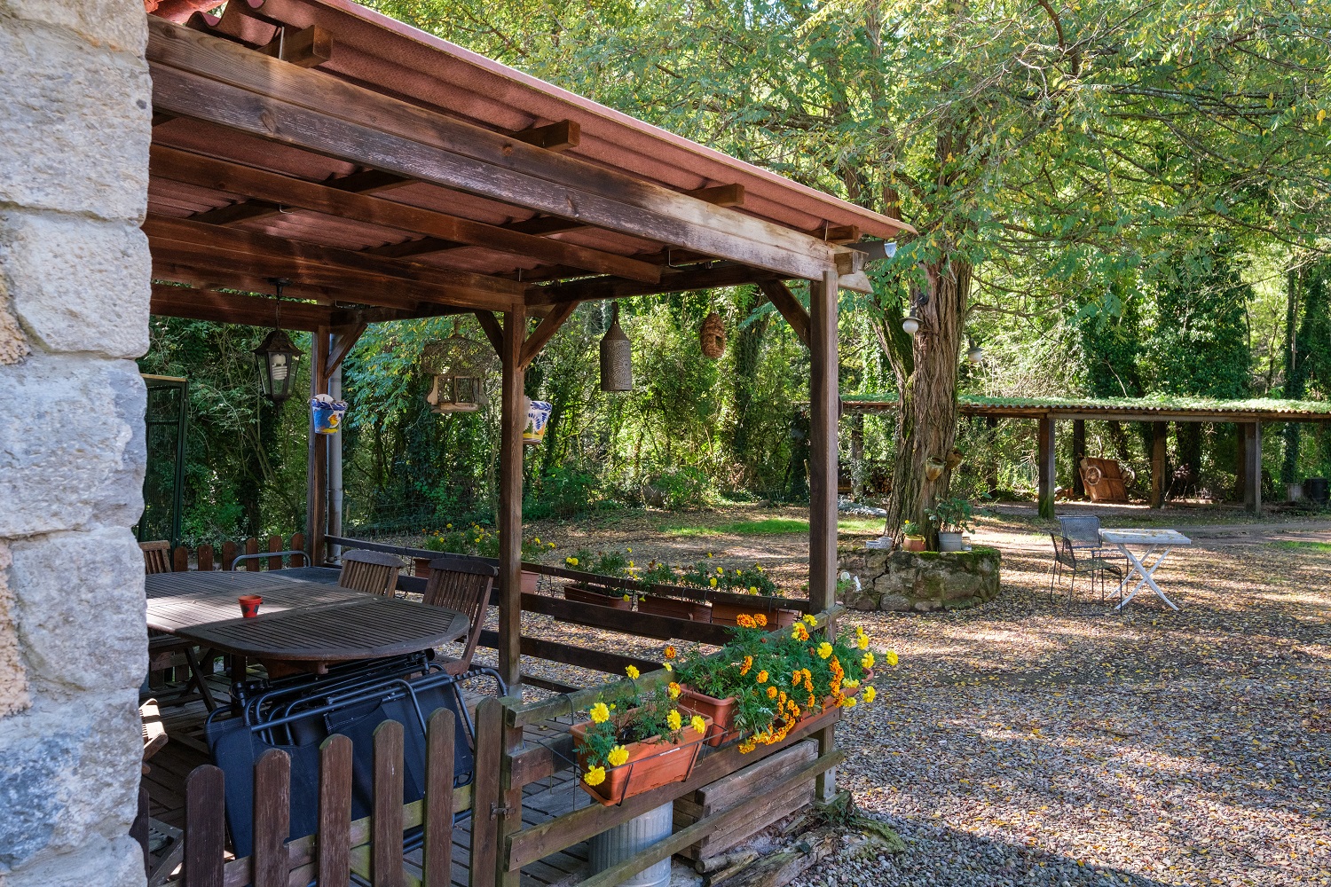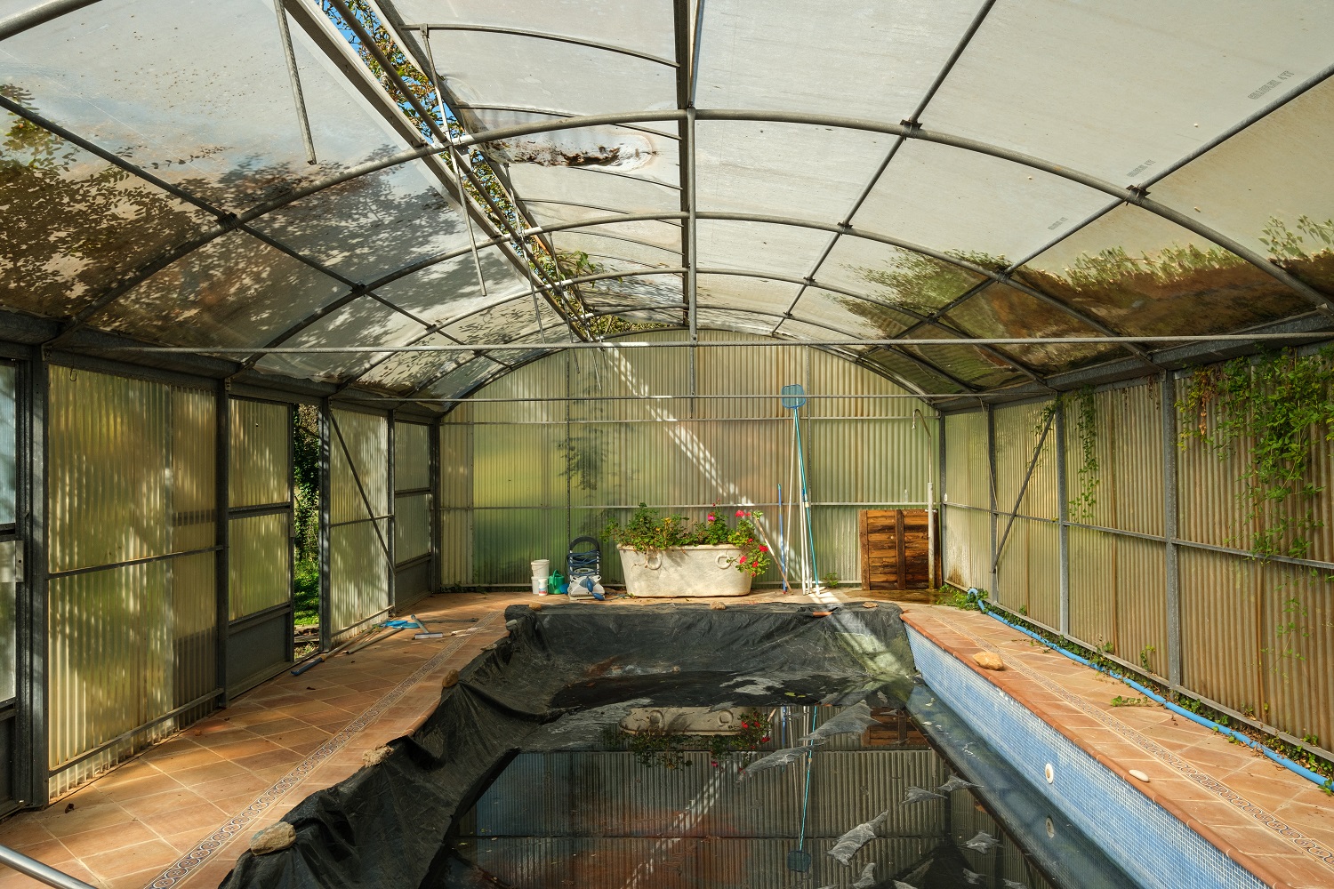 Al voltant del volum principal una construccio de planta baixa i pis destinada a habitatge, una piscina i una zona de barbacoa porxada amb forn de llenya .
