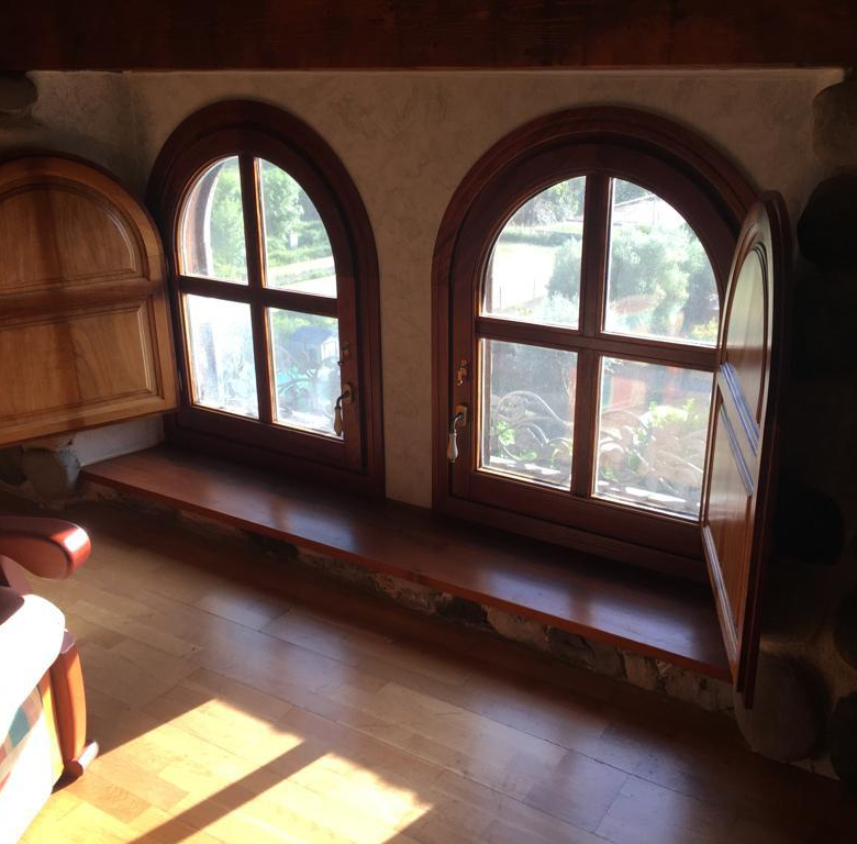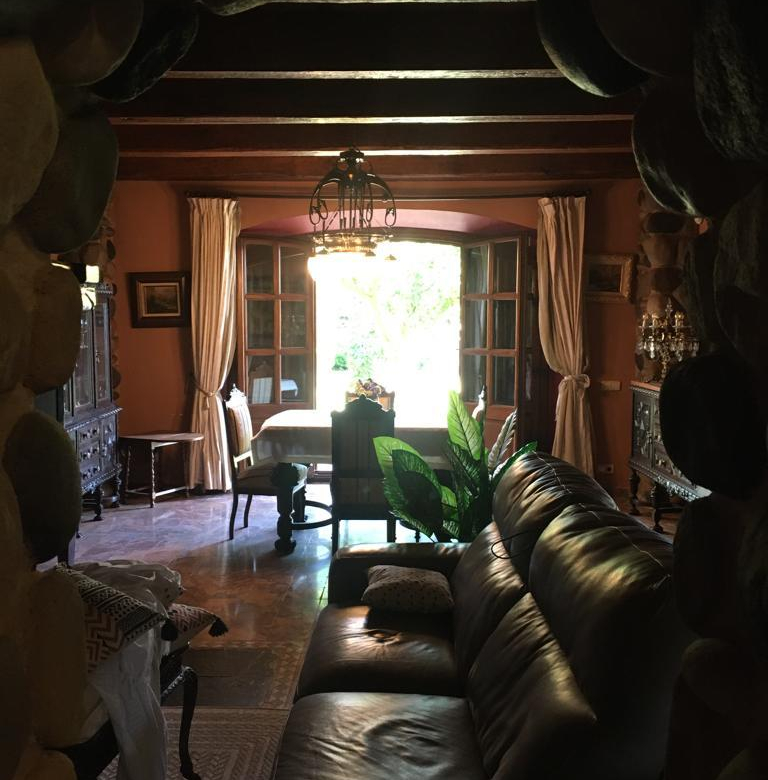 Té dos porxos, un de 80m2 i un de 50m2. Un que dona a la sala en planta baixa orientat a ponent i l’altre orientat a est davant de la façana principal separats pel jardí.