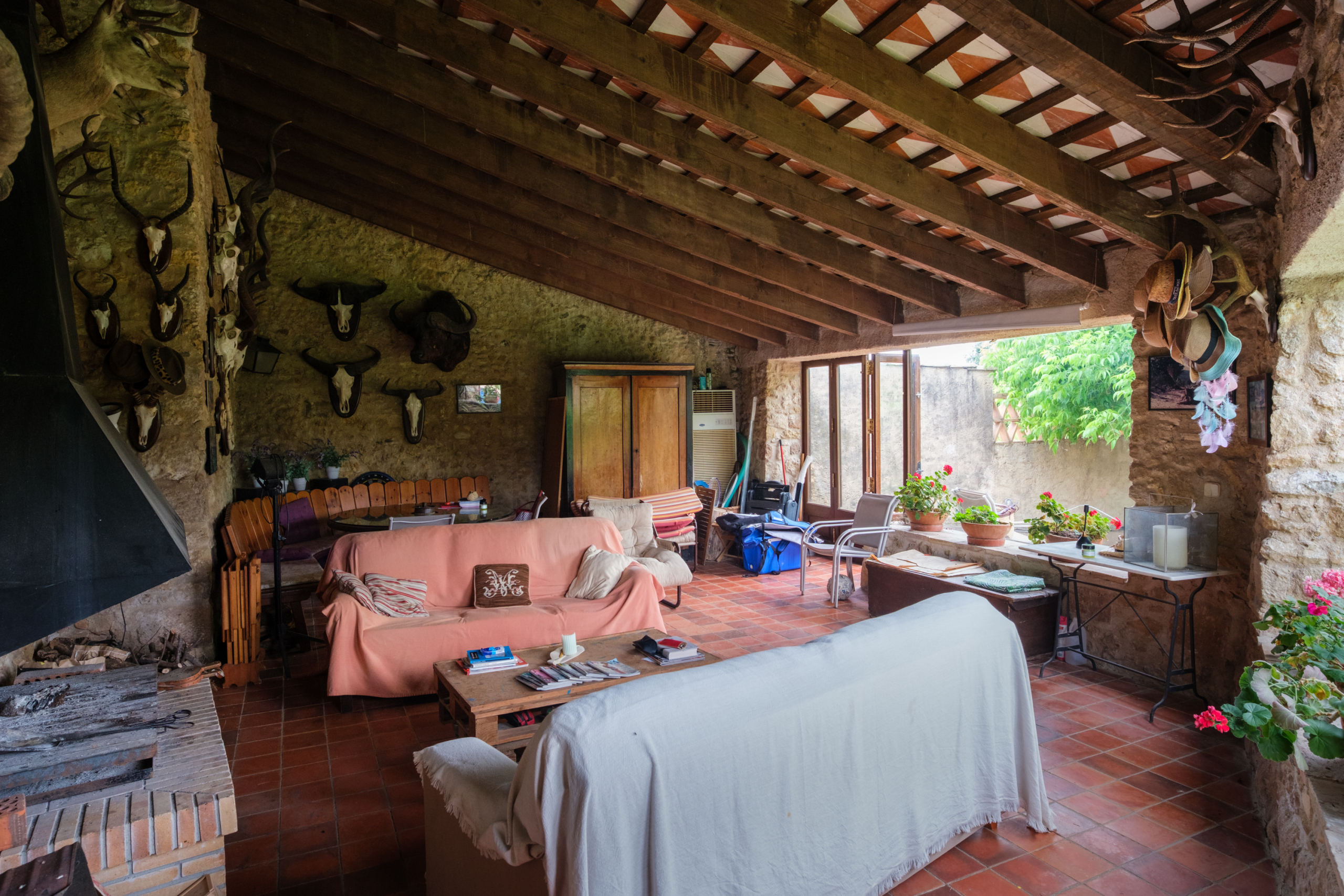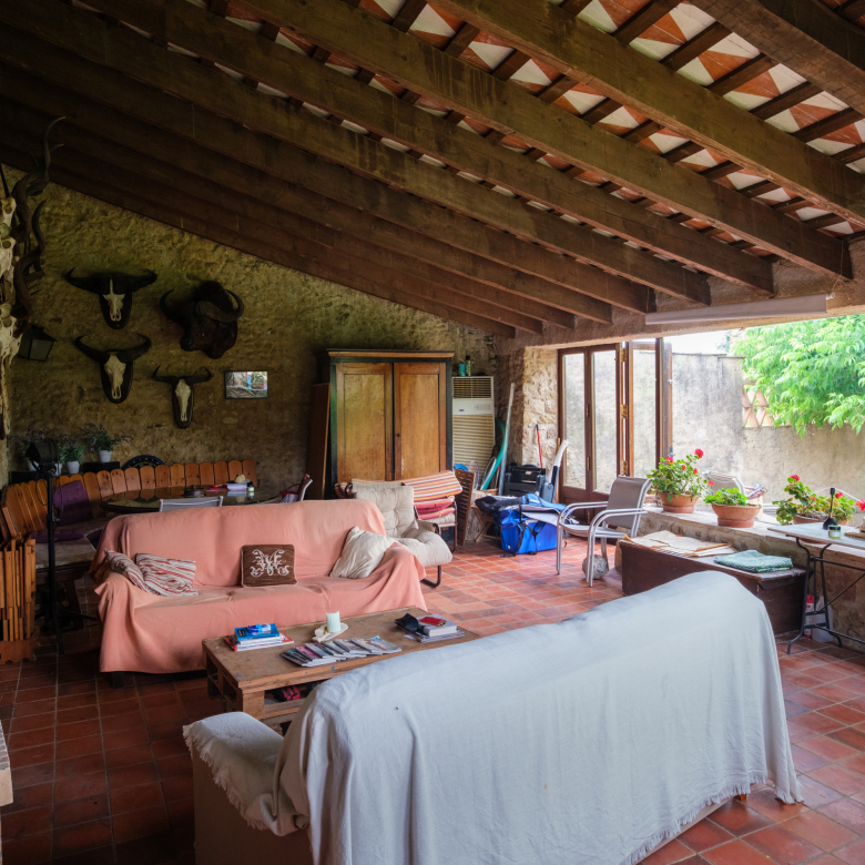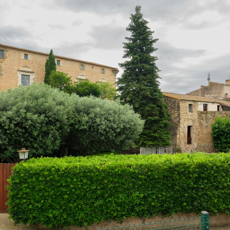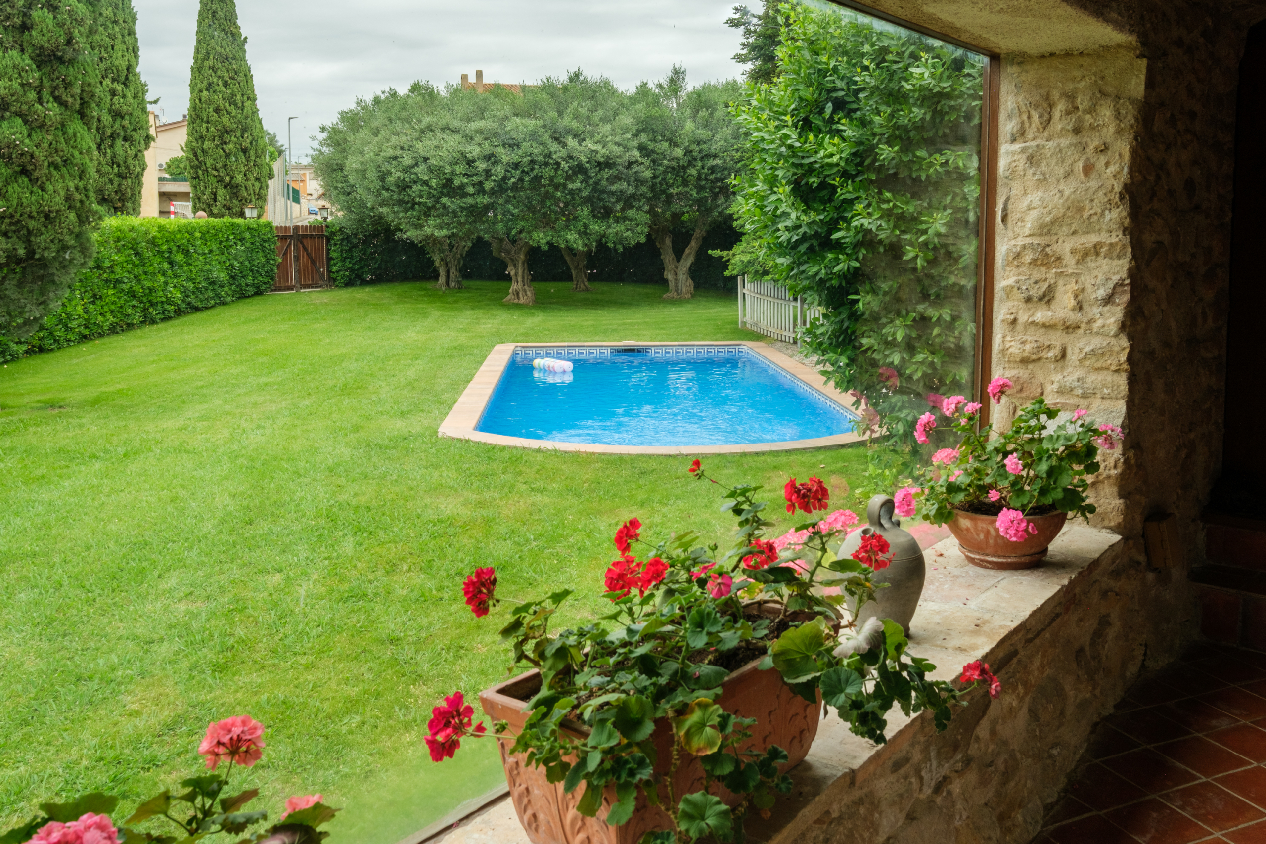El jardí amb piscina i vegetació autóctona (oliveres) d’edat avançada.