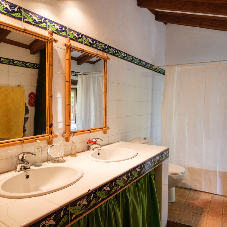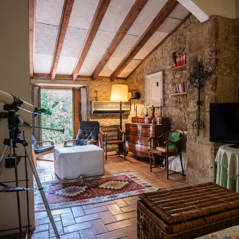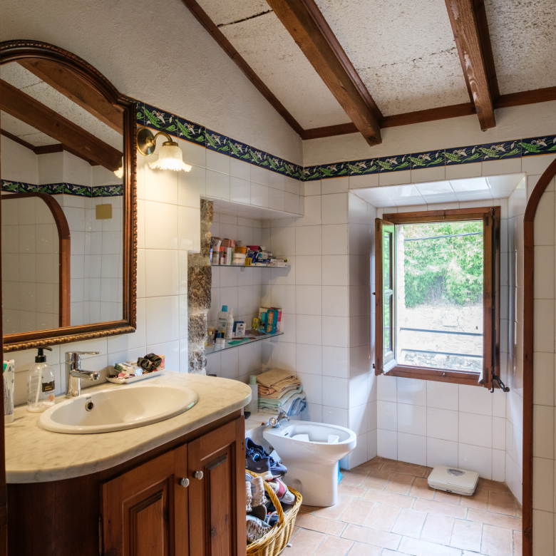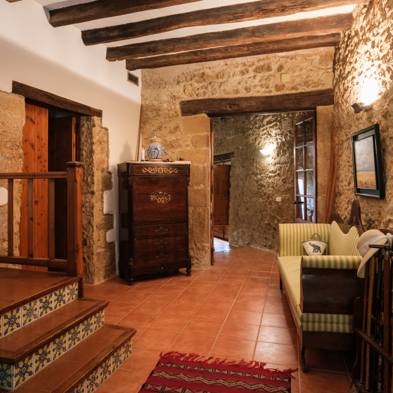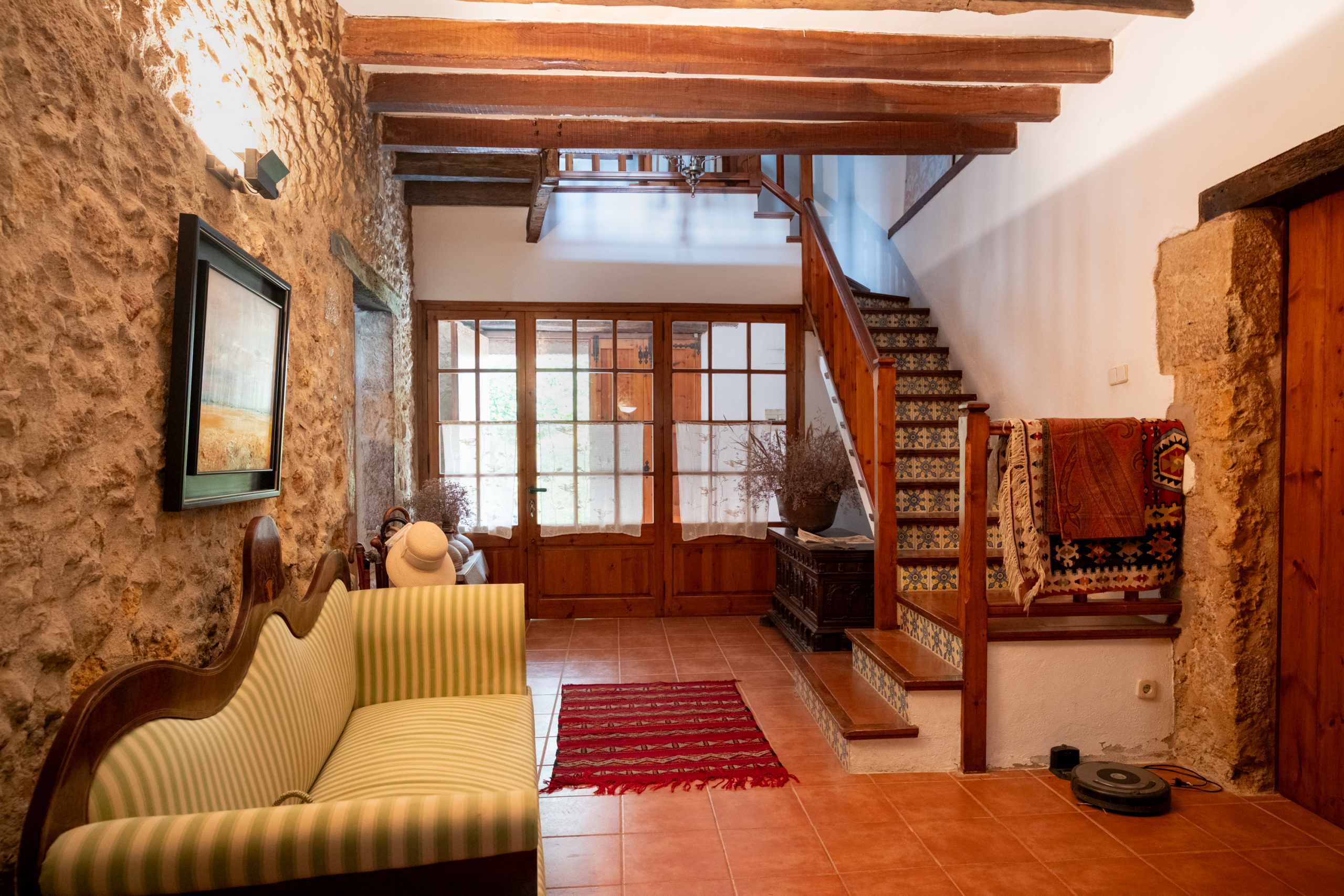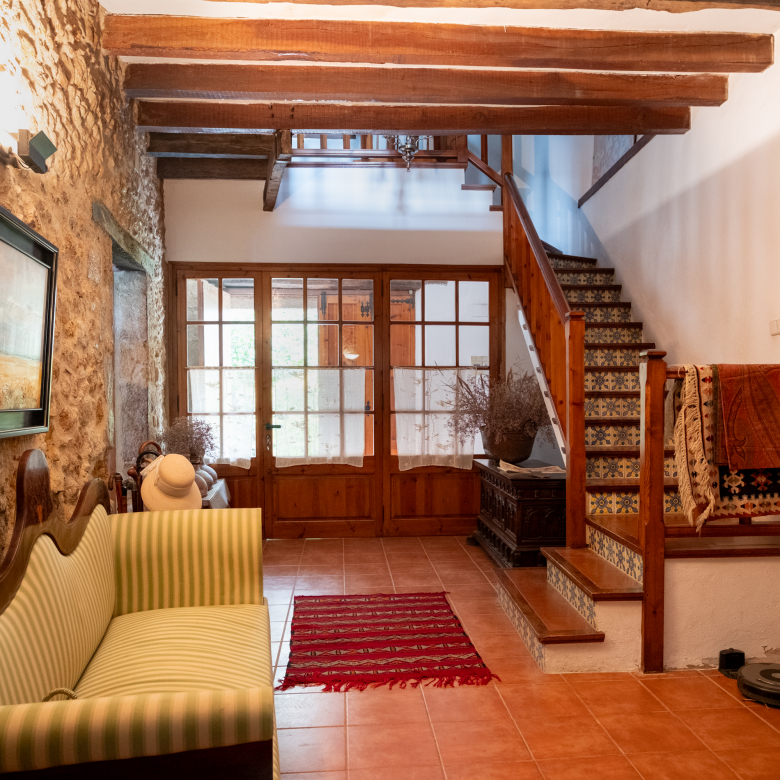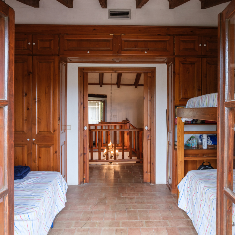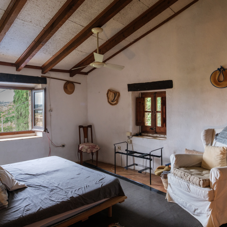 Accés amb escala oberta a  la planta primera amb quatre habitacions , dos banys i dues terrasses una llevant i l’altre a ponent.