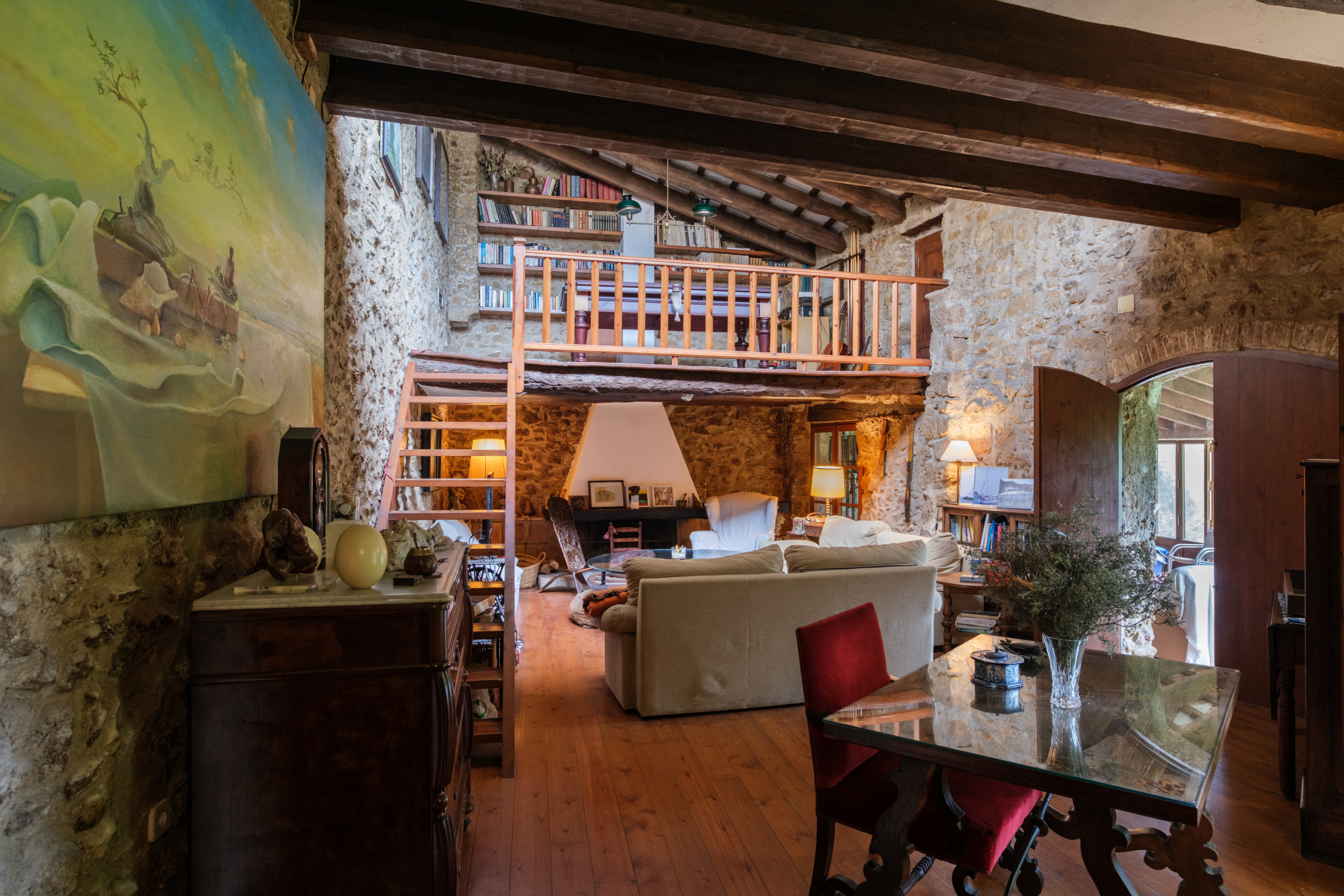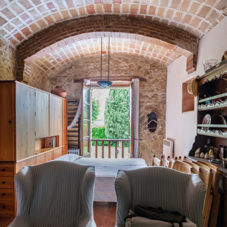 Zona de dia a la planta baixa , cancell d’entrada que s’obre a una escala d’accés a la planta primera oberta en tota altura , dues sales una amb altell , cuina , bany , rebost i una habitació que manté els arcs i les voltes de rajola. Garatge amb zona instal.lacions directe a carrer.